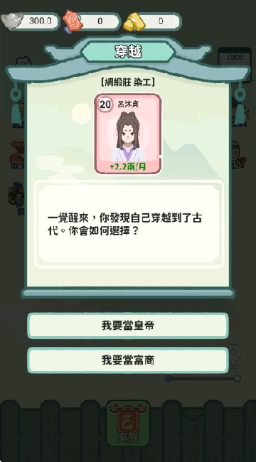 一觉醒来你穿越了,你需要选择你的发展线路。