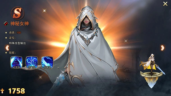 游戏玩法丰富多元,涵盖卡牌收集解锁英雄与女神、集齐碎片激活神器等功能,带来多样化体验;