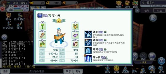水系方面,荀采和石广元都具备冰封技能,专职之后更是都能冰冻敌人,是平民玩家完成控制任务和参与PK时的必备角色。所以新手千万不要觉得系统赠送的角色没用,直接就放弃不用了。