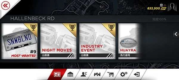 车库里未解锁的车辆会以剪影的形式展示出来,同时搭配性能参数的预览以及试驾的片段,以此来激发玩家收集车辆和提升车辆性能的欲望。