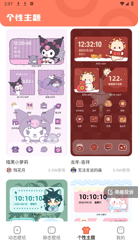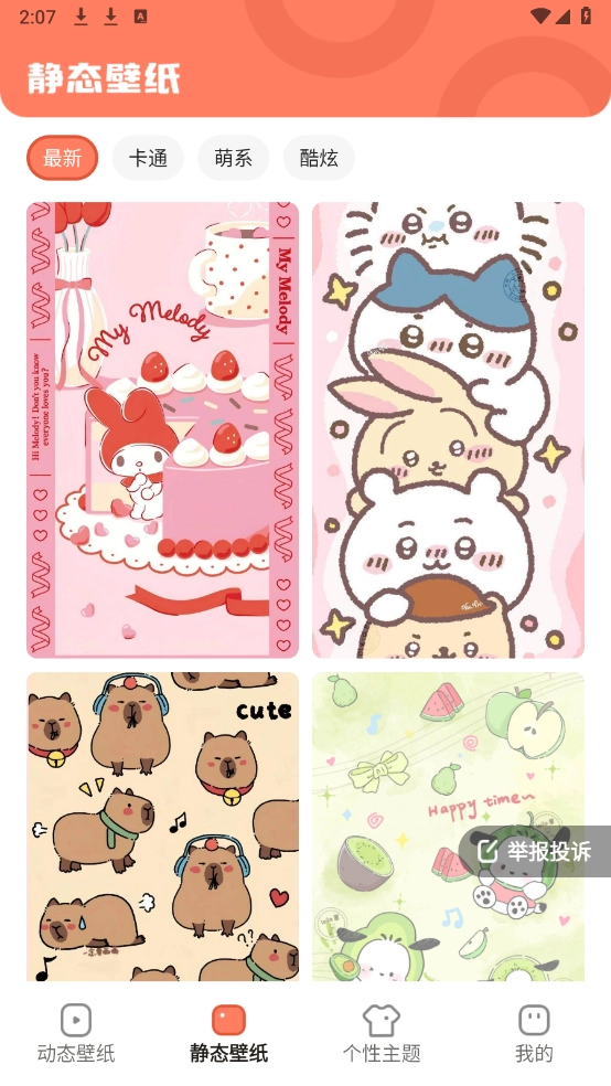 进入首页,能看到动态壁纸、静态壁纸和个性主题这几个板块。